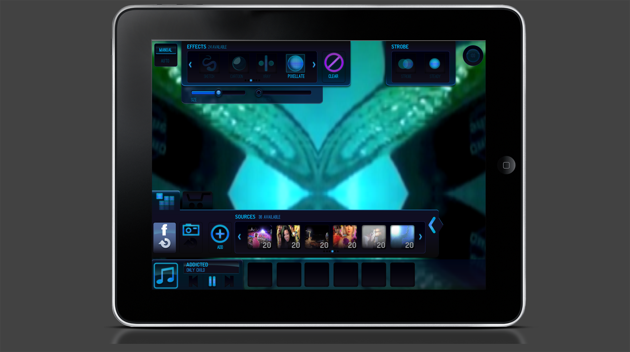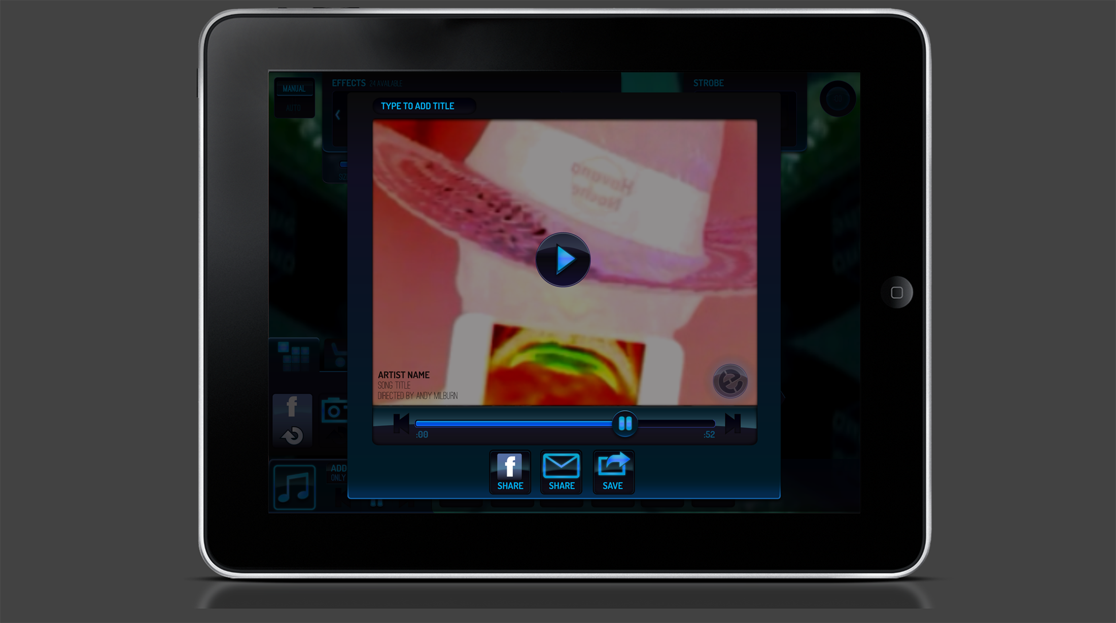 Be the life of the party, club or arena. EyeCandy allows you to make remarkable visual effects set to the music of your choice. Pick a song and create instantly. Choose from embedded video clips, add your own videos, photos, or even scan the web to populate your creation. Master the art of VJing in seconds.