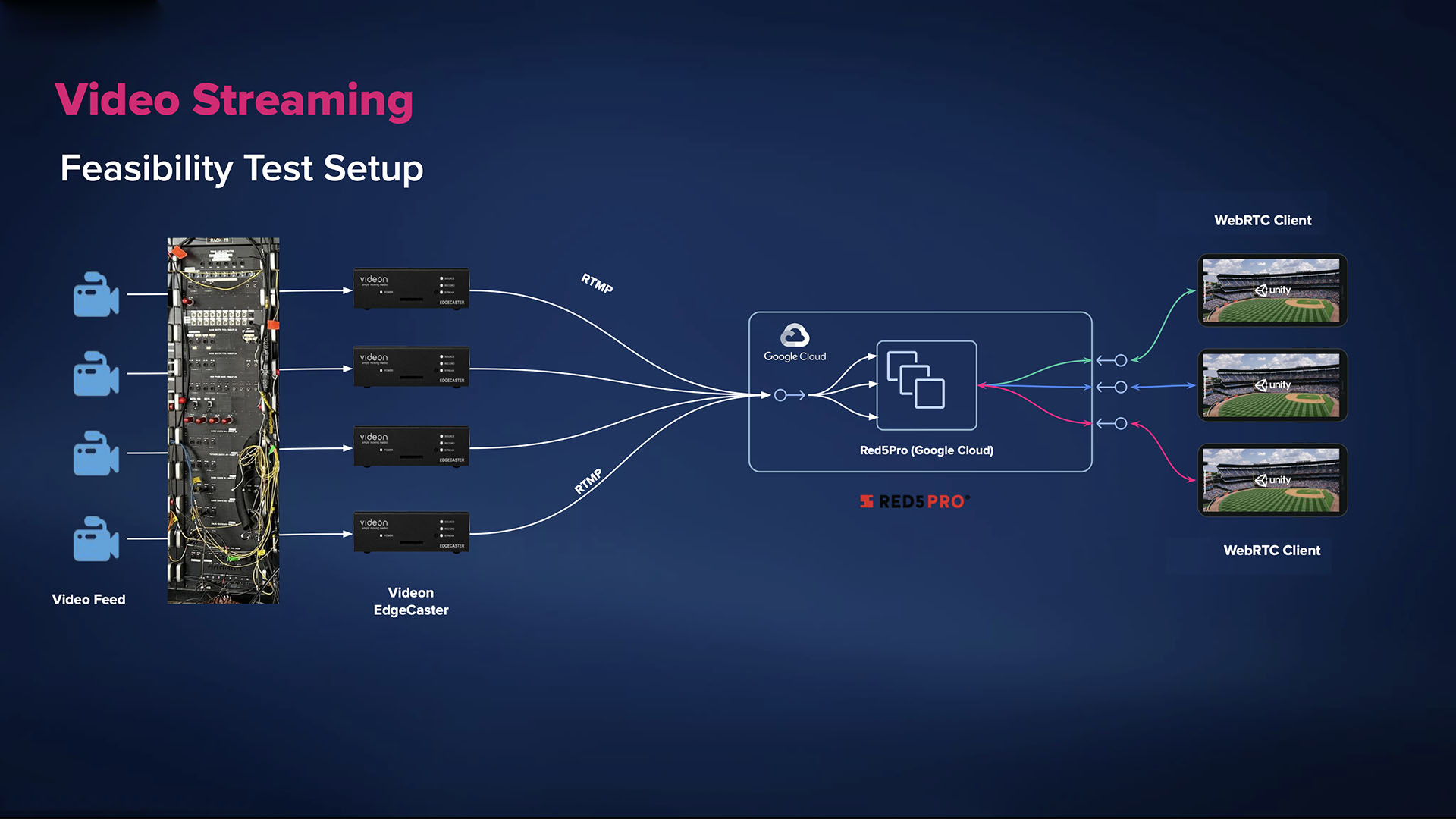 With Mixhalo, fans received instant  ESPN and FOX audio that stayed perfectly aligned with the action. And in collaboration with Red5Pro, we built a WebRTC prototype that captured four MLB “alt” angles, streamed to the cloud, and delivered  back to fans in 50–150 milliseconds. Fast enough to match the crack of the bat with instant visual context.