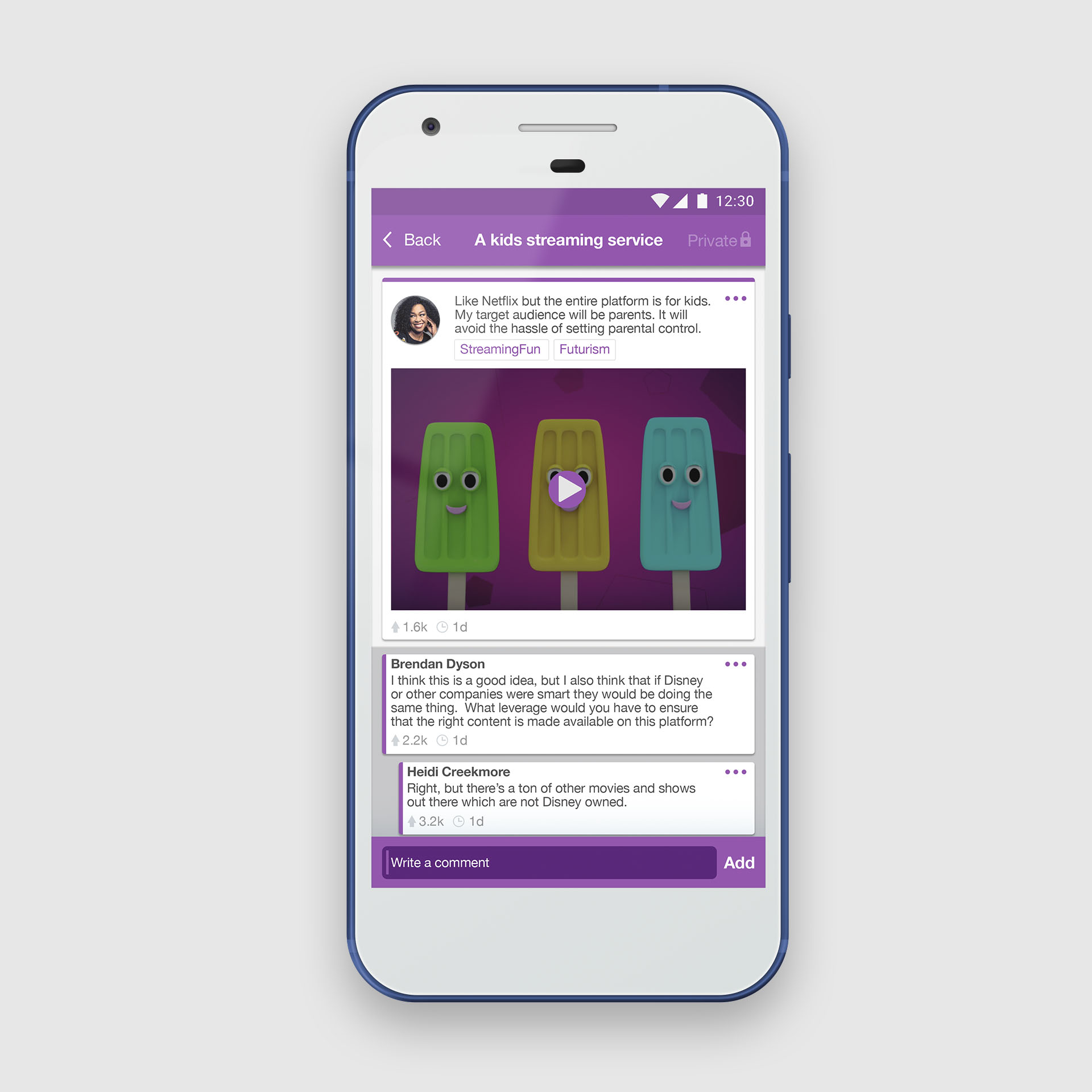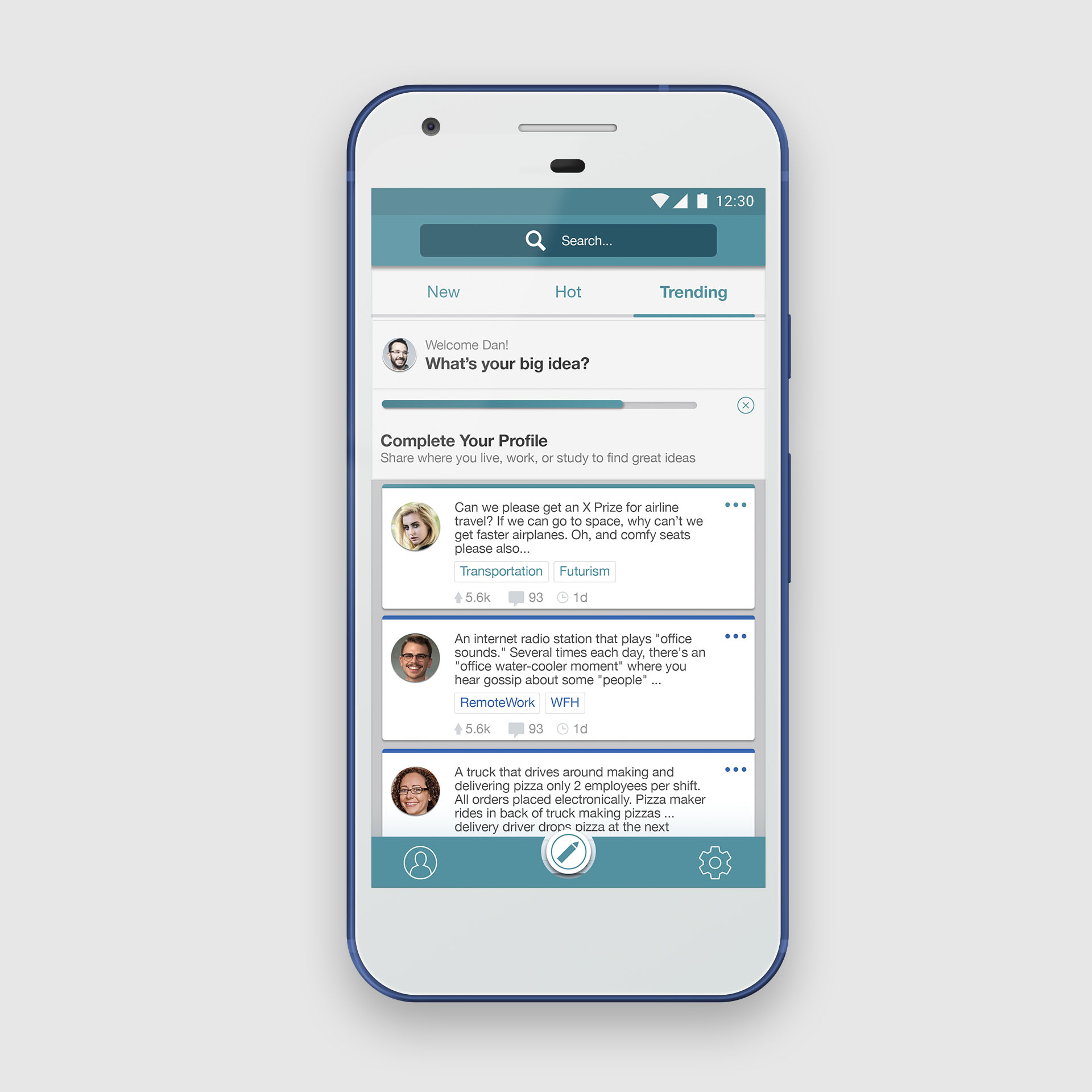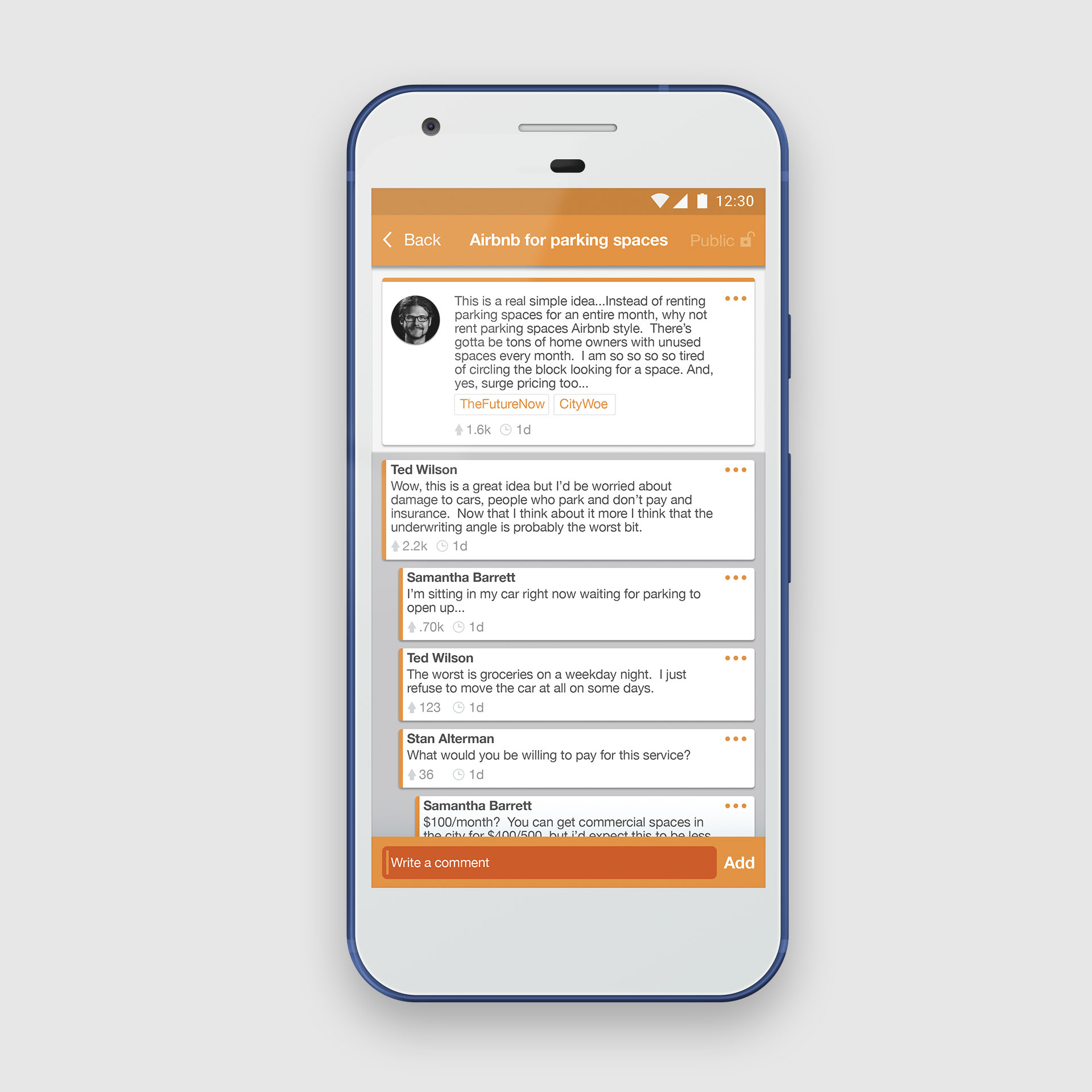 Because this product sits at the intersection between Quora and Reddit, we spent time researching the different ways that users on both platforms interact with content. We wanted to make an experience that felt familiar and unique, but also encouraged authoring and sharing great ideas. We created a distinction between the anything goes ethic of Reddit and the question focus of Quora by allowing a place where everything from the very whimsical to the serious idea can live.