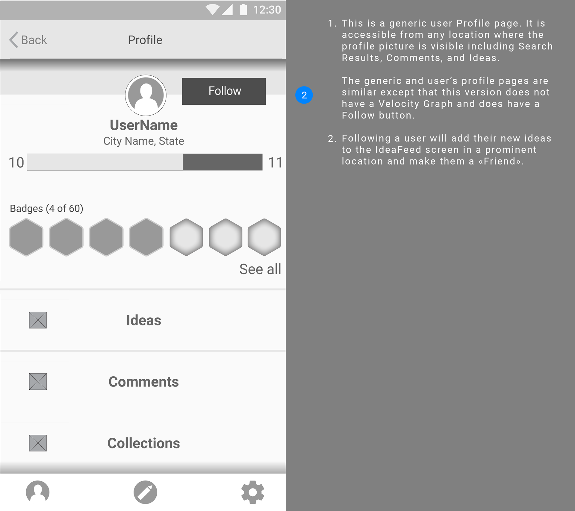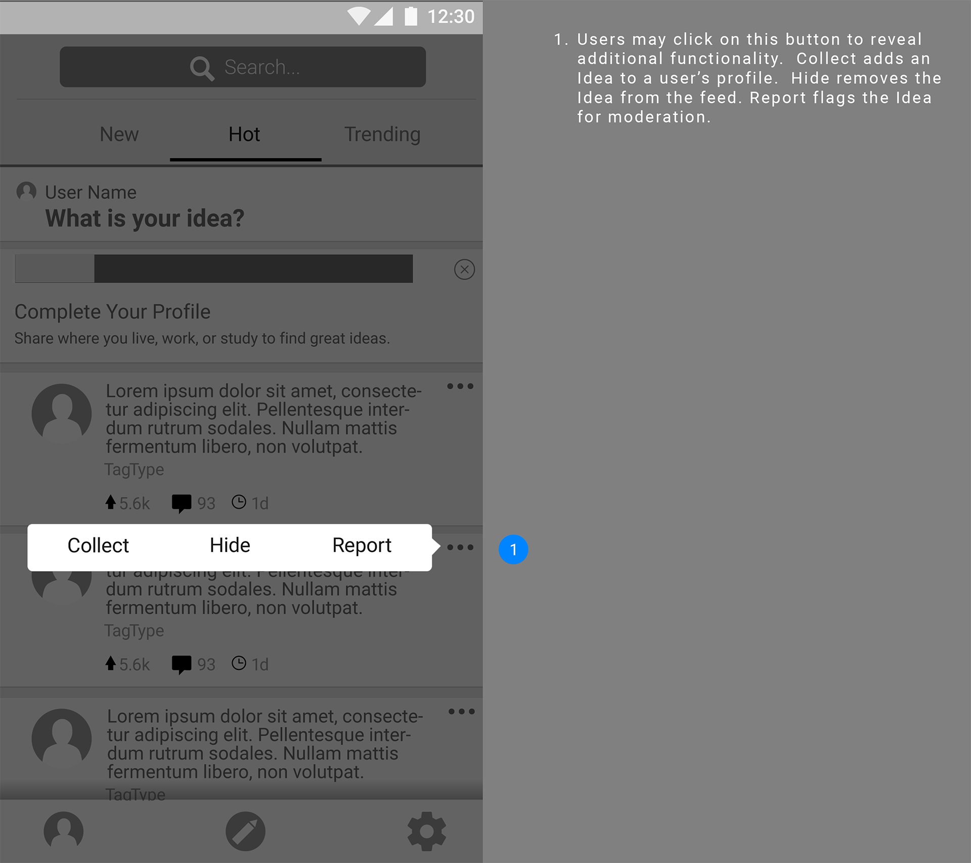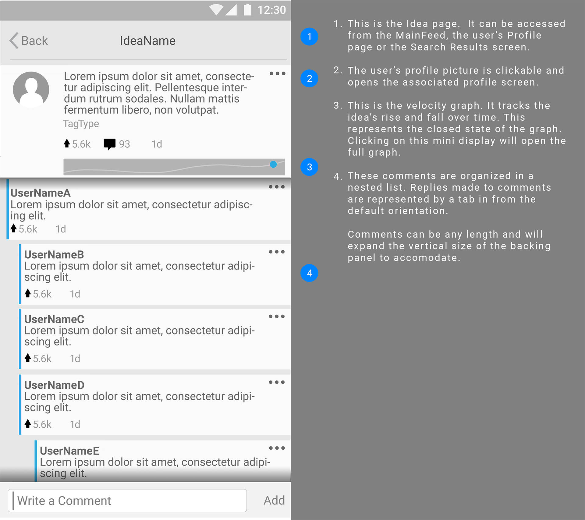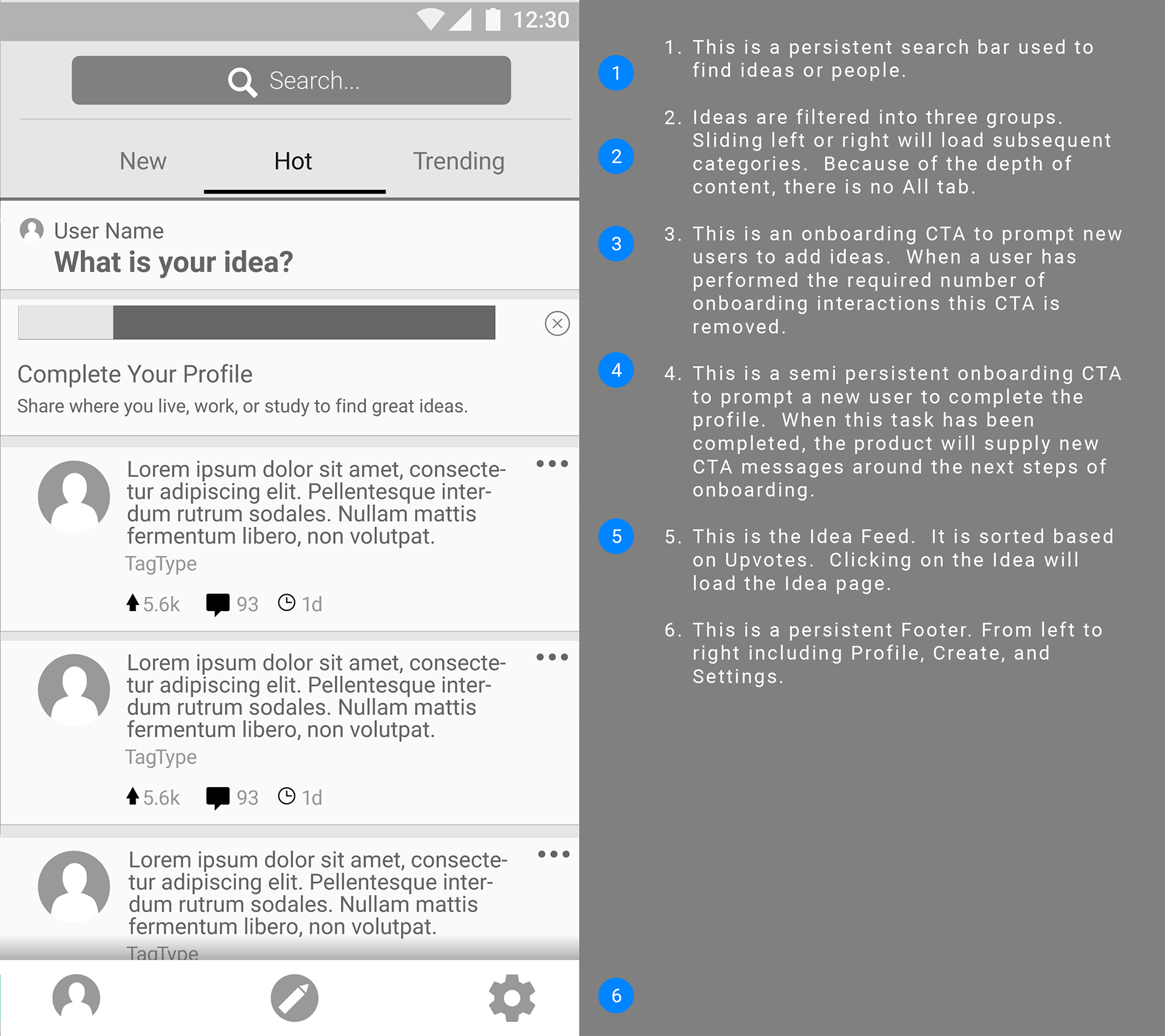 Because this product sits at the intersection between Quora and Reddit, we spent time researching the different ways that users on both platforms interact with content. We wanted to make an experience that felt familiar and unique, but also encouraged authoring and sharing great ideas. We created a distinction between the anything goes ethic of Reddit and the question focus of Quora by allowing a place where everything from the very whimsical to the serious idea can live.