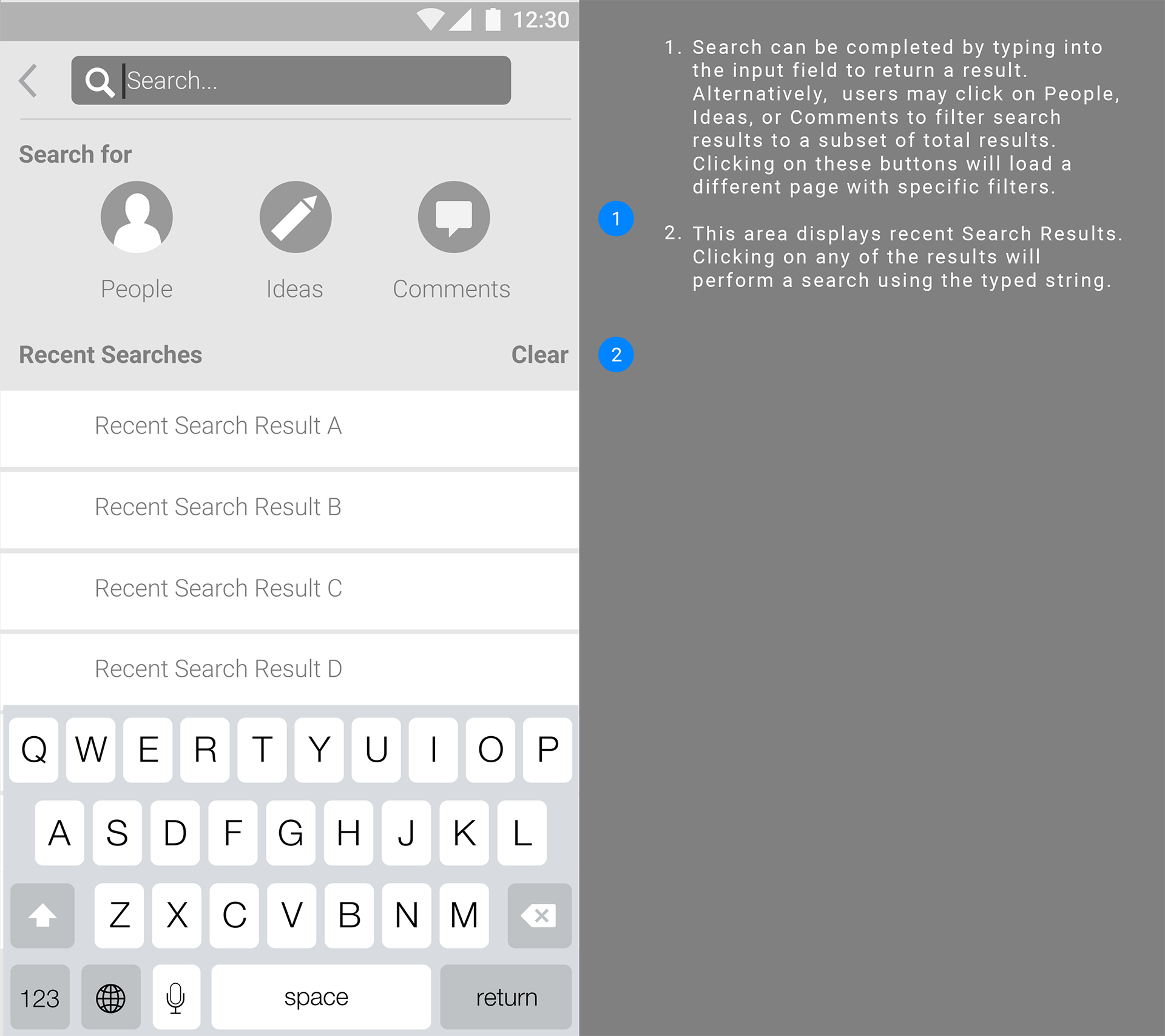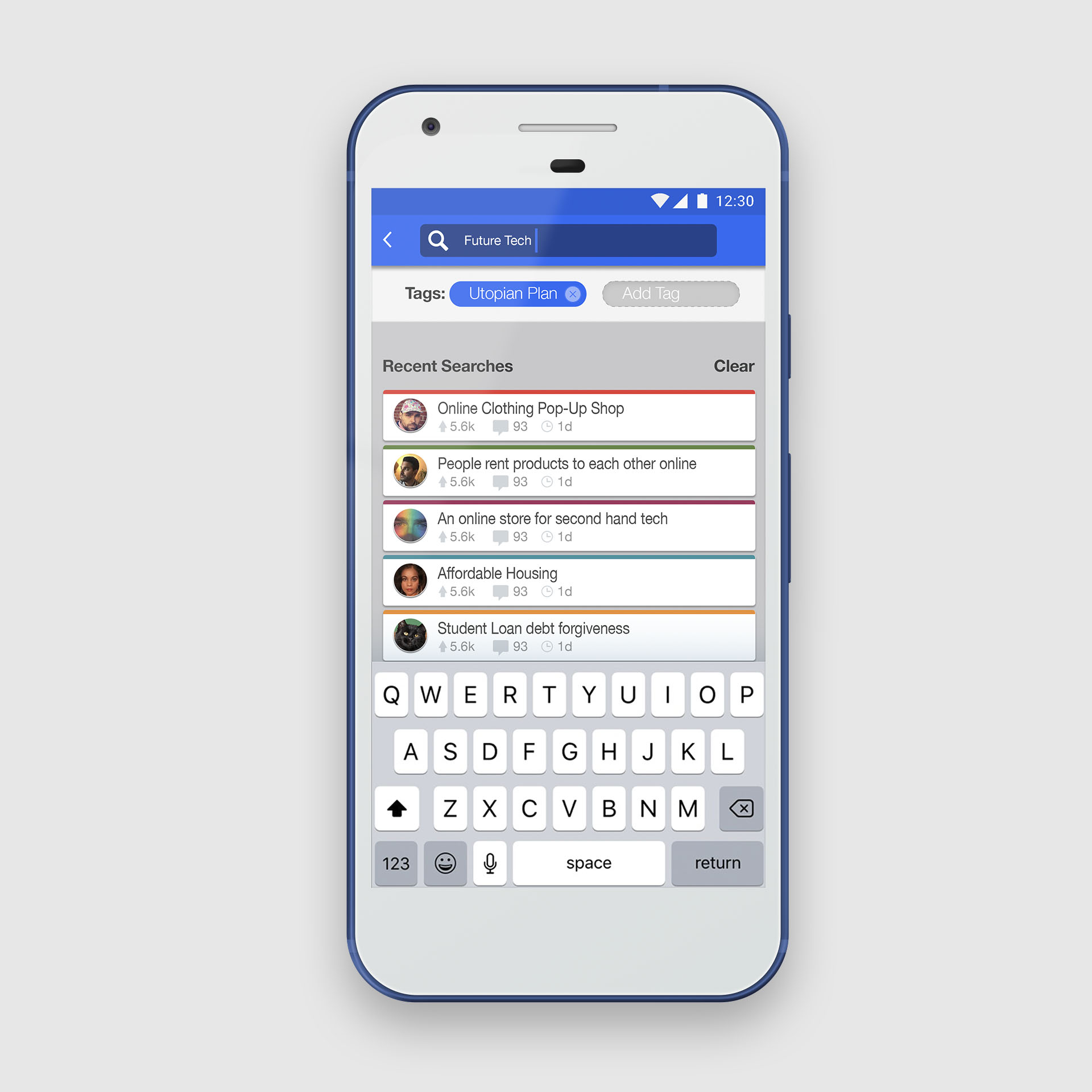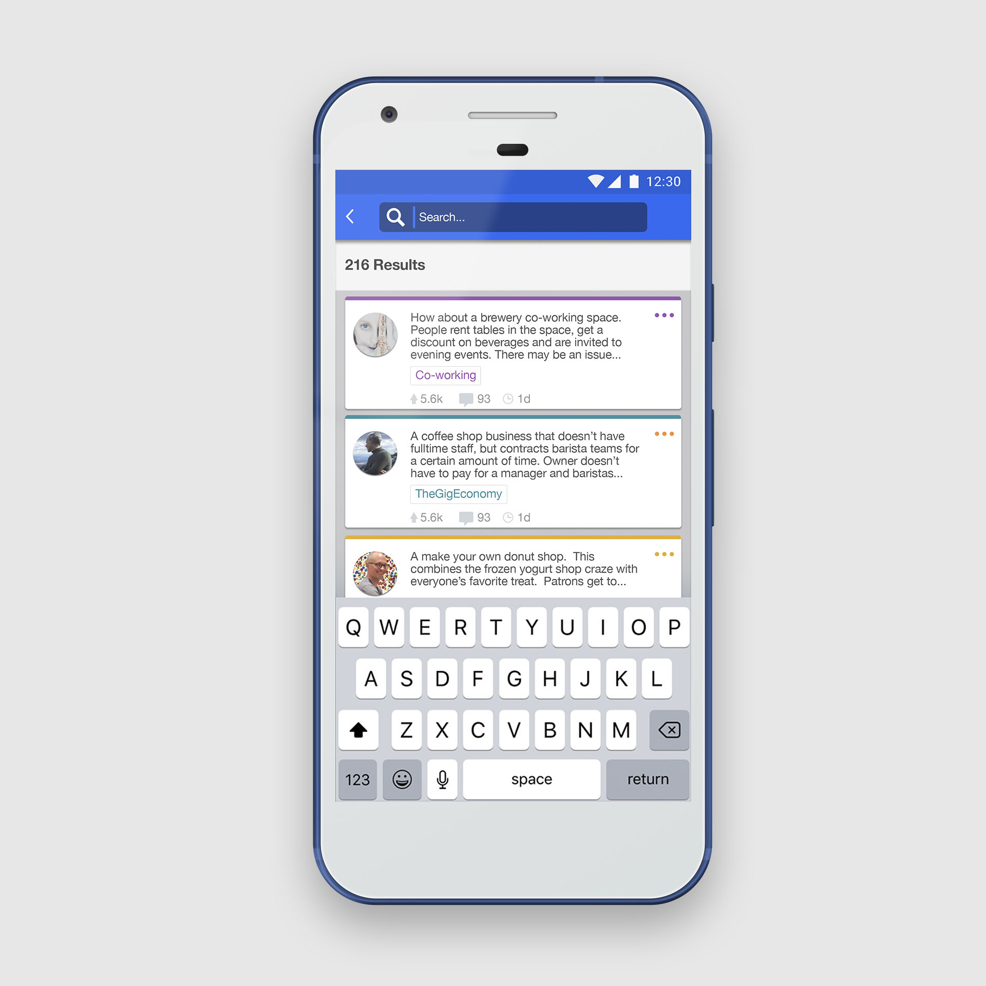 We knew that search and browsing large content libraries would be an issue. As a result, we developed a UX that allows trending ideas based on interest to bubble to the top but also offered a Search functionality with deep control that makes finding what you’re interested in quick and intuitive.